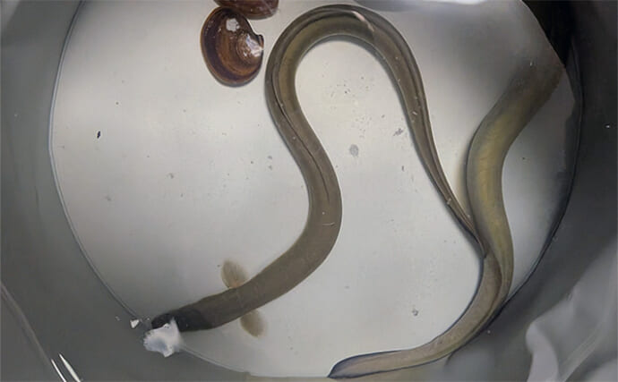 遠投で仕留めたウナギ(提供:週刊つりニュース中部版APC・石川友久)<週刊つりニュース中部版APC・石川友久/TSURINEWS編>