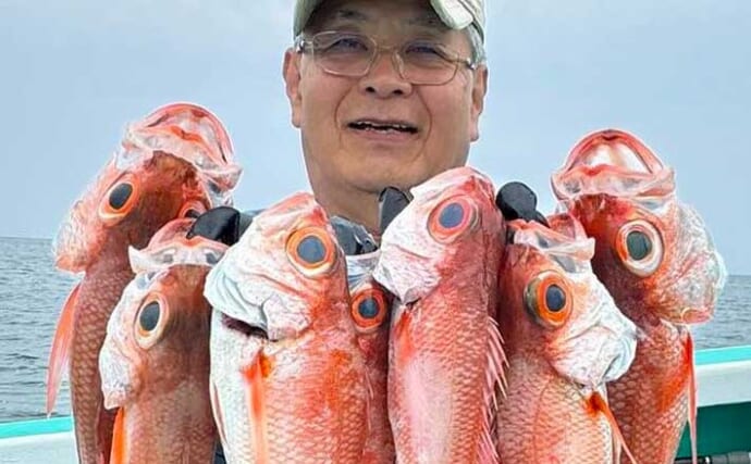 北陸エリアの沖釣りでは好調釣果が続出。富山湾では強神丸がアカムツ狙いのロング便で出船し、バラシに苦戦しながらも本命を複数キャッチ。イカメタルでは明るいうちからスルメ&マイカが好反応で、数釣りを満喫。さらにタイラバ&ジギングでは80cm超のマダイも上がり、良型狙いは今後も期待できそうだ。