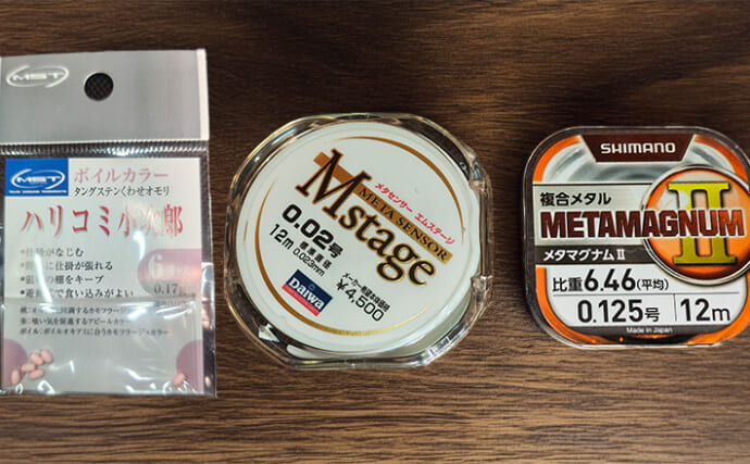 ロッドが長めの場合は、メタルラインの先にさらにフロロやナイロンをリーダーとして使い、スプリットのシンカーや重りを一点に集中させるのではなく、メタルラインで重さを分散させるようなイメージでセッティングすることが多いです。