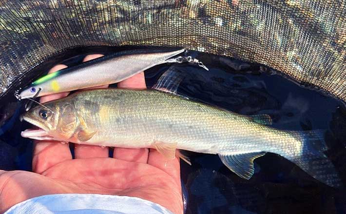 メーカーによって名称が違いますが、鮎を模したルアーで、鮎の友釣りに近い釣りです。私が参考にしたメーカーでの名称は、DAIWA AYUING(アユイング)、DUO(デュオ)ルアー鮎のキャスティング、PALMS(パームス)