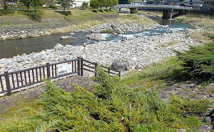 階段でアクセスできる河川(提供:TSURINEWSライター・丸山明)釣り人が多い場所を参考に