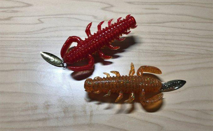 このワームはエビやザリガニのような甲殻類ぽい見た目のワームで、凹凸のあるボディが水をかみながらバイブレーションし頭部の4本の足がアクションをするたびにプルンプルンと動き、アピール力抜群なワームだ。