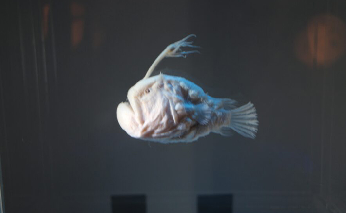 派手な抵抗はないものの重量感がハンパない。一体何がかかっているのか。数分後、浮上してきたのはなんと巨大なアンコウ。大型のタモに入りきらず、ギャフを掛けて船上に取り込んだ。計量すると11kgもあった。