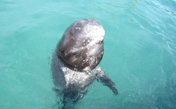 ハナゴンドウは大きな群れを作って生活するイルカの仲間。2016〜2017年には、合わせて5頭のハナゴンドウが白良ヶ浜海水浴場で座礁し、息を引き取っています。