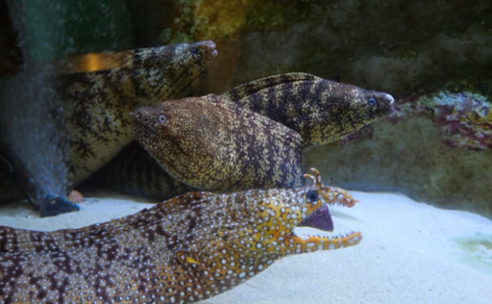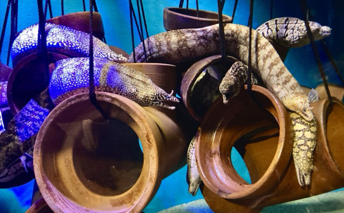 ウツボといえば、やはりあの鋭い歯と、岩陰から獲物(魚やタコ)に飛びかかる獰猛なイメージ。毒々しい体の模様も相まって、「ギャング」と呼ばれるのもなんだか頷けます。