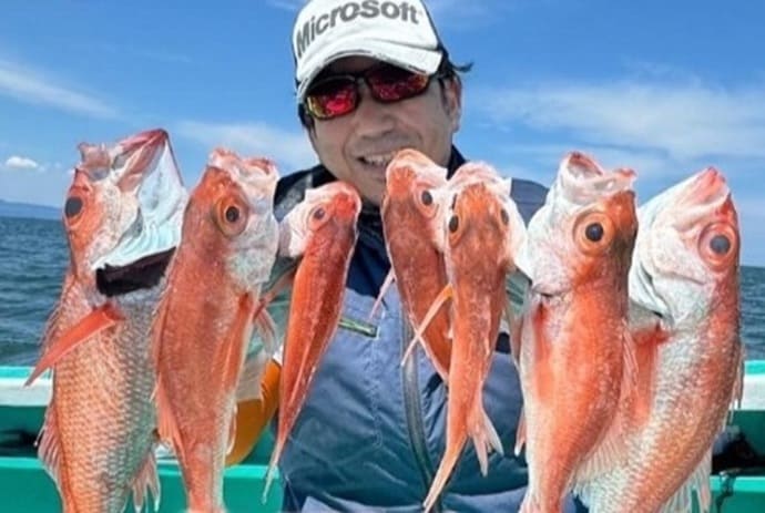 富山県射水市にある新湊マリーナ出船の強神丸では7月26日、アカムツ狙いのロング便で出船。開始早々からコンスタントにアタリがあり、出だしから好調な釣れゆきに。