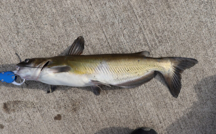 釣り上げられたアメリカナマズ(提供:茸本朗)今年は寒さと風もあり苦戦する人が多い中、60cm台を2本揃えた参加者が優勝。釣り上げられたアメリカナマズは漁協によって回収され、食用や飼料用に活用されるといいます。