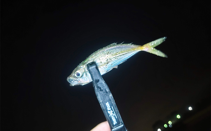 釣果は最大でも15cmに満たないサイズながら、5匹のアジをキャッチ。時合いは短かったが、上げ止まりの前後でしっかりとアジの気配を捉えることができた。