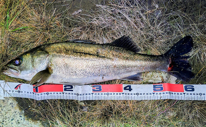 ミノー系が良かった(提供:TSURINEWSライター・宮坂剛志)疲労もピークだが集中して投げ続けると、橋脚付近で強烈なアタリがきた。秋のシーバスらしい強烈なファイトで上がってきたのは、コンディション抜群の62cmのシーバス。この流れを待ったかいがあった。