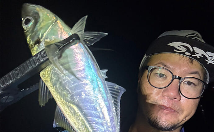 潮汐変化が大きい天草では、アジが回遊する時間も短いことが多いため、変化に合わせてキャスト位置を細かく調整することが重要だ。狙いのレンジを長く流せる重さを選び、潮が緩んだタイミングや常夜灯周りではフォール中のバイトが頻発した。状況によってキャロとジグ単を切り替えることで、効率的に釣果を重ねていった。