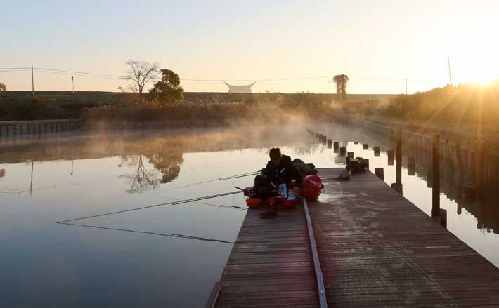 朝は冷え込んだ(提供:週刊へらニュース編集部・関口)放射冷却の影響で冷え込んだせいか、水面からは水蒸気が立ち上る。幻想的とも言える光景だったが、肝心のモジリがほとんど見られないのが気がかりで仕方がない。