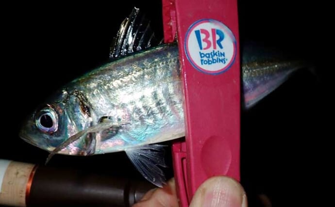 キープしたアジの一部(提供:週刊つりニュース中部版APC・浅井達志)ここでふと気づいたのだが、この日は常夜灯の下にボラの群れを見かけなかった。いつもなら悠々と泳いでいる巨ボラが1匹も、である。それが関係しているのか分からないが、苦戦を強いられた一日だった。