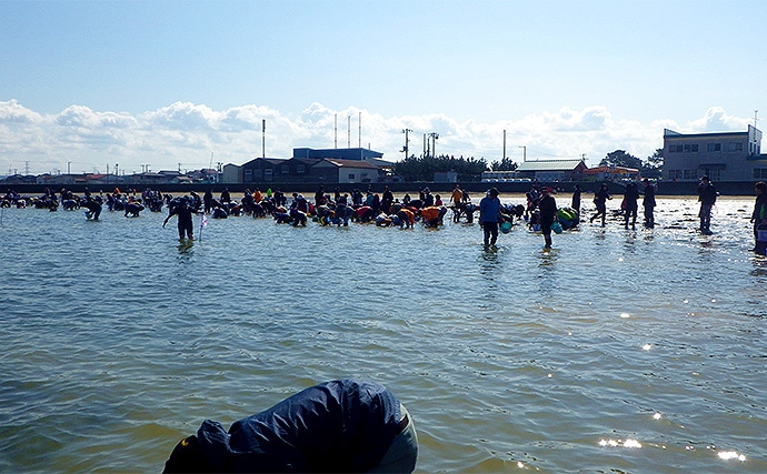 有料潮干狩り場は施設も充実(提供:週刊つりニュース関東版 APC・野口美和)一方、無料で楽しめる場所は、漁業権の関係で限定されますが、何より費用がかからないのが最大の魅力です。ただし、道具類は自分で用意し、天然の貝を自力で探し出す必要があるため、有料施設に比べると難易度はやや上がります。