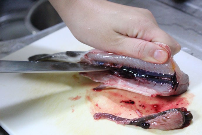 3.内臓を取り、血合いに刃を入れてきれいに流す工程は同じ。