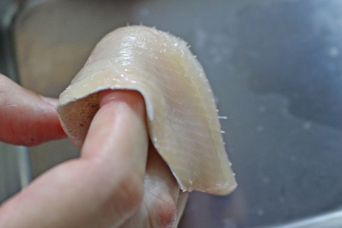 皮を引く(提供:週刊つりニュース関東版 小谷)小骨(血合い骨)について