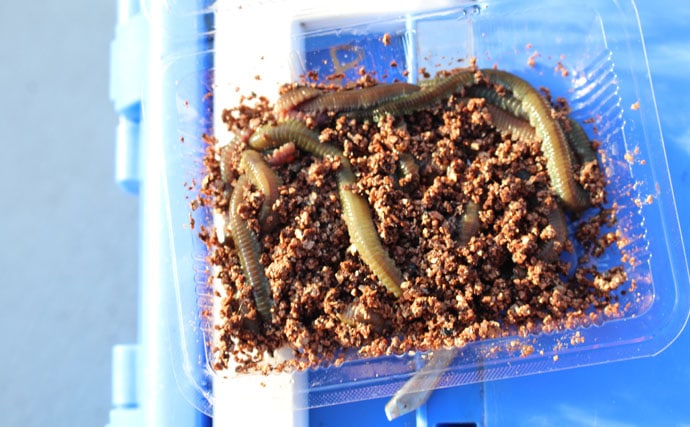 アオイソメやイシゴカイなど虫エサも一般的。特に春ごろのベイエリアではゴカイ類の産卵行動であるバチ抜けが多く見られるため、メバルがゴカイ類を偏食している可能性があります。この時期には虫エサは必ず持参しましょう。